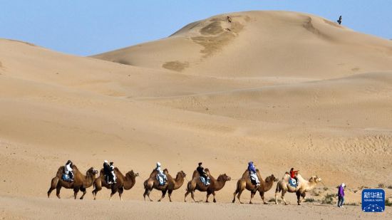 10月(yuè)3日(rì),旅客在內(nèi)蒙古鄂爾多(duō)♥↓斯市(shì)杭錦旗庫布其七星湖(hú)↓$π沙漠生(shēng)态旅遊區(qū)騎駱駝(無東(dōng)談主機(j ±∑÷ī)相(xiàng)片)。