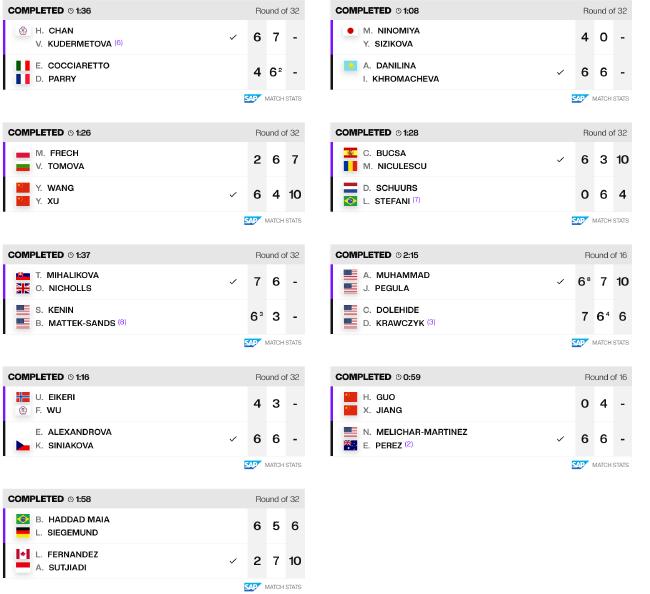 當日(rì)女(nǚ)雙全王人(rén)賽果如(rú)下£♣§★(xià):