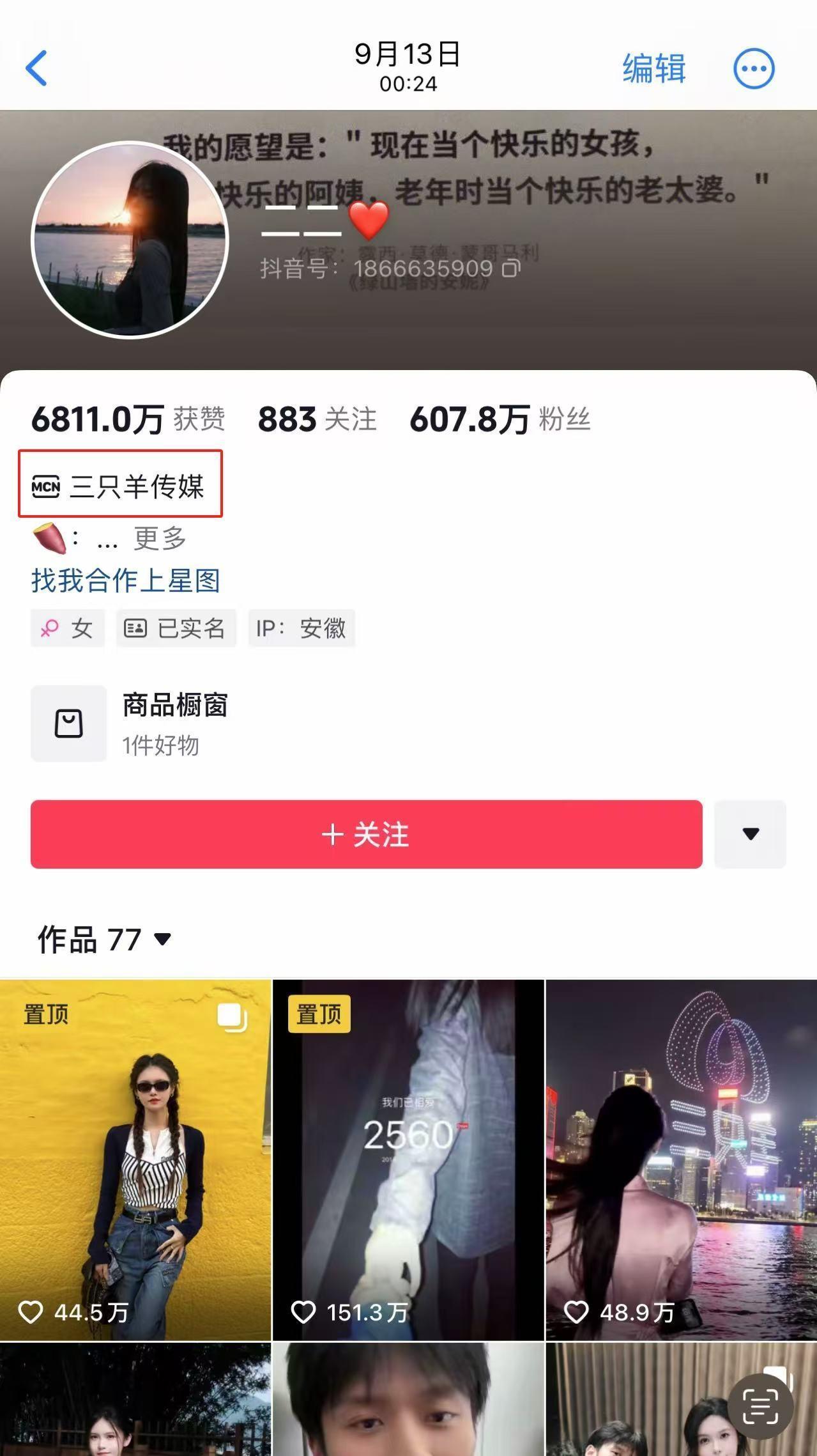 小(xiǎo)楊嫂抖音(yīn)賬号取消三隻羊MCN認證