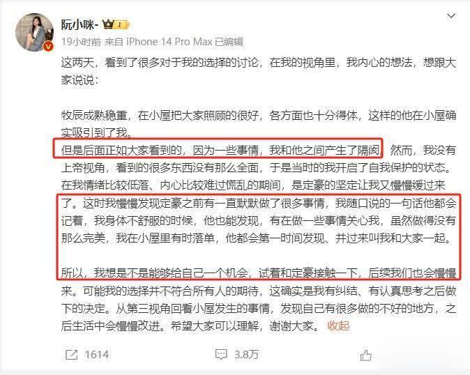 《心動6》收官就(jiù)翻車(chē)?阮小(©₽φxiǎo)咪回複選李定豪原因,節目組下(xià)場(chǎng)力挺
