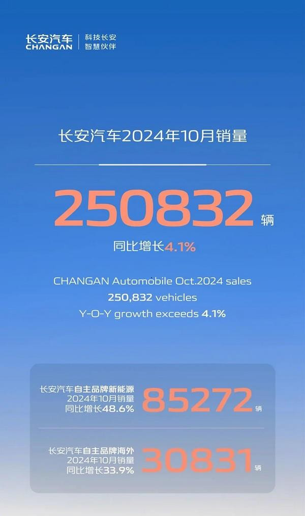 近(jìn)日(rì),長(cháng)安汽車(chē)公布10月(yu¥< ↑è)份銷量為(wèi)250832輛(liàng)、同比增長(chá∑π₹☆ng)4.1%,2024年(nián)1-10月(yuè)新動力銷✘∞量超53萬輛(liàng),同比增長(cháng) "超45%。